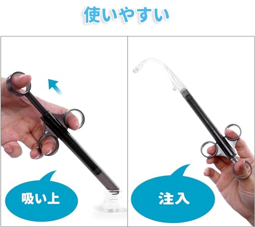 スムーズに吸入と注入ができるようになり、プレイ準備中のストレスが減りました。10mm入るため、ローションを大量消費するアナルプレイに最適でした。