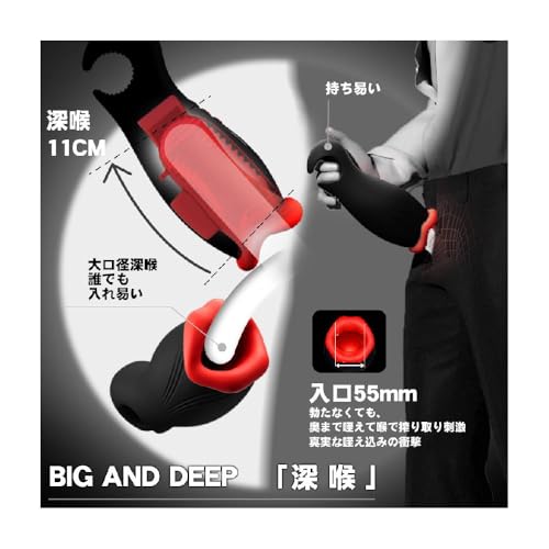 - 商品のコンセプトとしてはノド奥までペニスを突っ込んで震わせる、「ディープイラマチオ」の再現。そのため亀頭ポケット内側にはヒダ加工が施してあり、内径もかなり狭め。