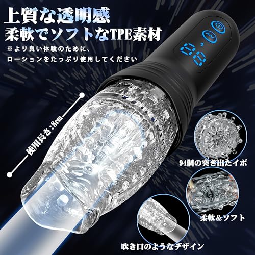 - ①7回転②ピストン ③7吸引 ④7振動 ⑤360°神舌舐め ⑥水play&冷・温の二重刺激 ⑦oneパタンで爆吸⑧透明真空PUMP(to be stronger!) ⑨エア解放 ⑩100%防水⑪LED液晶ディスプレイ⑫USB Type-C充電⑬視觉ウィンドウ⑭サイズ制限なし⑮シンプルなデザイン