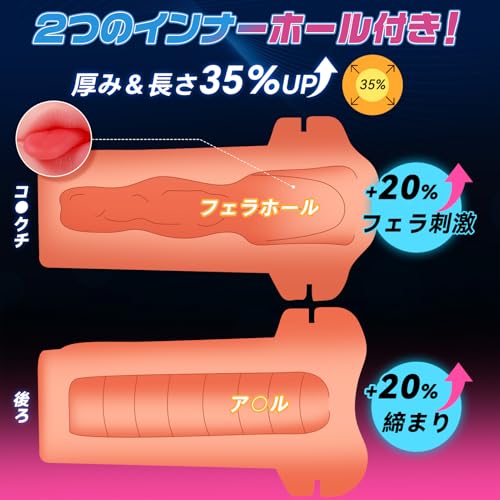 - 舌を備えたホール部分は凹凸大きめ。「うねるヒダの無次元リアル構造」に、「とろけるナマ舌」も再現。空気抜きで「喉奥バキュームフェラ」も再現。強力ピストンで荒々しくペニス全体をストロークしてくれます。