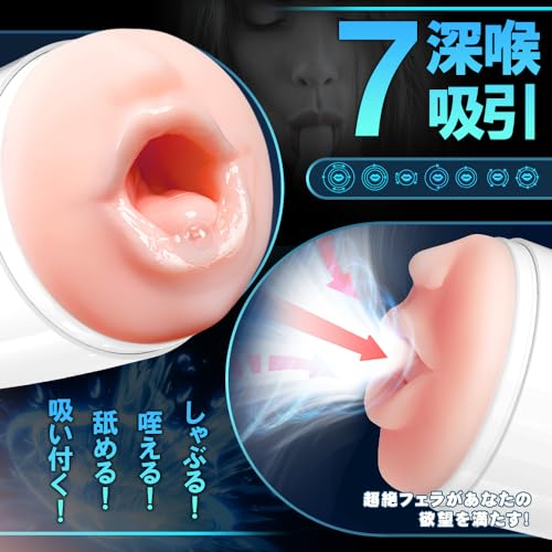 - 吸引パターン7種×振動パターン7種。温熱機能搭載の人肌リアルSEX仕様。口内の温度ともとれるでしょう。