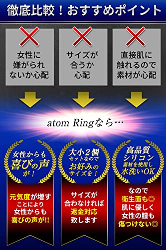 - Loveluのatomシリーズと同じく、大小の2サイズをセットにしているので、購入時にサイズ感で悩む必要なし。小のふぐり装着部の内径は3.6㎝、大の内径は4.1cm。竿装着部の内径は大小とも同じ2.8cm。Loveluよりほんのすこし径が小さめ。