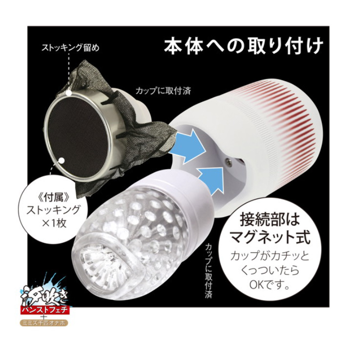 - 適正サイズにカットしたストッキングを専用カップに取り付けるため、本物のパンスト感触を楽しめます。ペニ先にローションをたっぷり塗布してからお楽しみください。