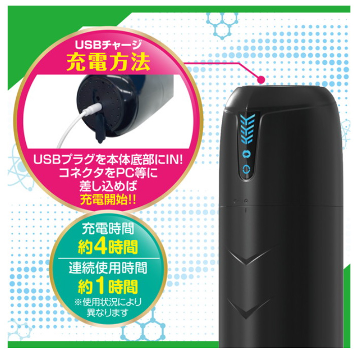 - 真空バキューム機能が柔らかく高品質なTPE製スリーブを内部からしっかり収縮。リアルなフェラホールの深い快感を得られます。それでいて自動排気システムを搭載しており、「吸われすぎて痛い…」といった不快感を完全回避できる高性能ぶり。