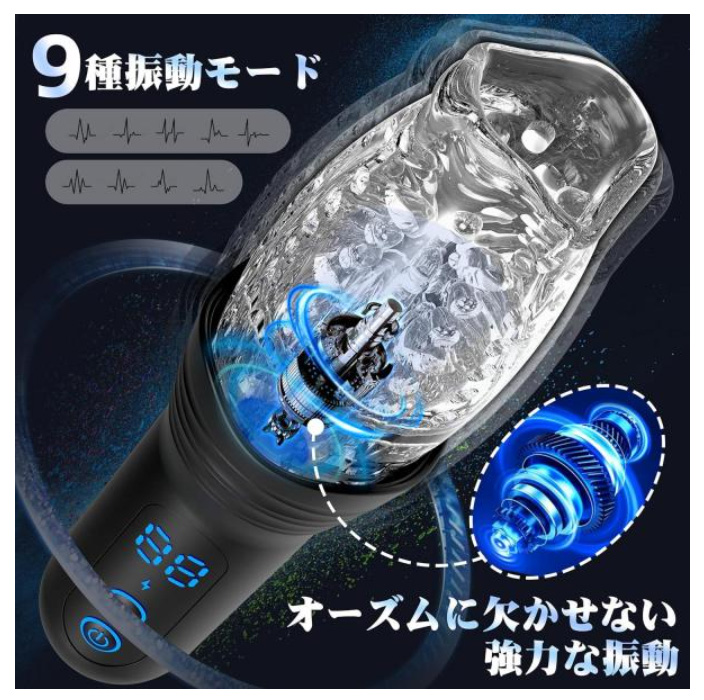 - ピストン運動・360度回転・爆震振動の三つの要素を融合したパワー十分な電動オナホ。