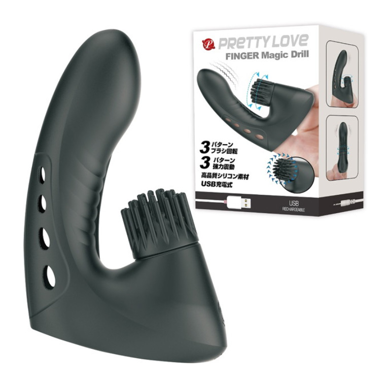 - プリティラブのフィンガーシリーズ最強イカセの指サックバイブ。振動のほか、クリトリス部のブラシ回転機能を搭載しています。