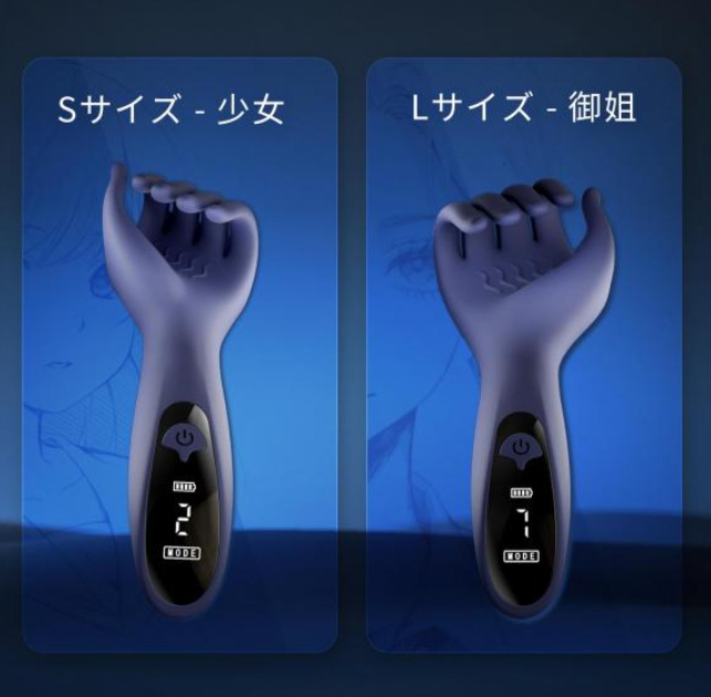 - 本体表面はシリコン製で指先は柔らかく、自由に曲げることが可能。手コキのようにペニスを手動で愛撫しながら、振動を楽しむのがおすすめです。意外と小さめでかなり握られている感覚に近いです。特にSはホント子供の手のように繊細な感覚。