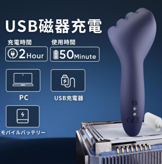 - マグネットUSB充電式(充電完了まで 120分/連続動作 50分)