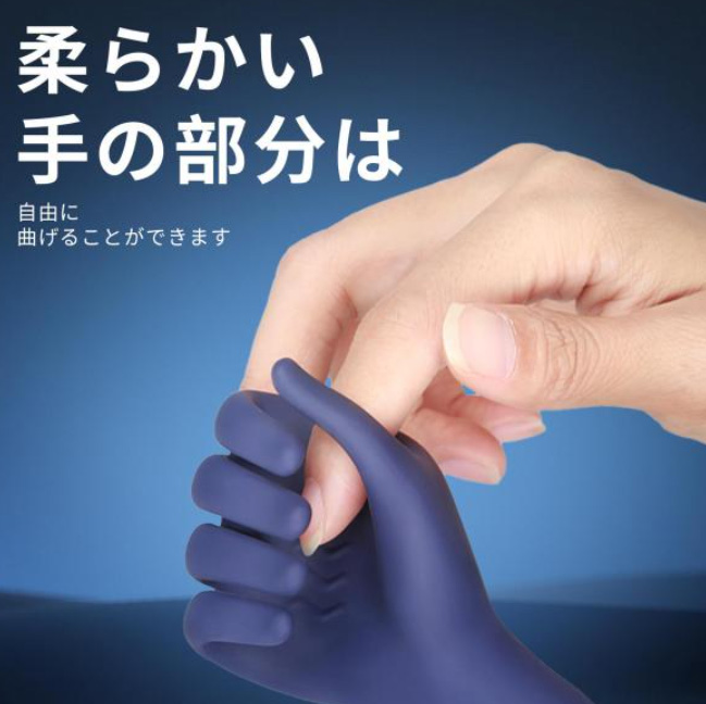 全体をシリコン素材で包んだ手の形バイブは柔軟性、クッション性が高く、ペニスのサイズや状態に関わらず、使用することが可能です。