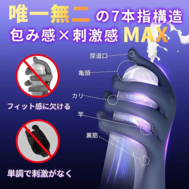 - 包み込み感覚が半端ないです。6本の指でペニス全体をしっかり包み込み、さらに上部の指は亀頭を集中マッサージ。