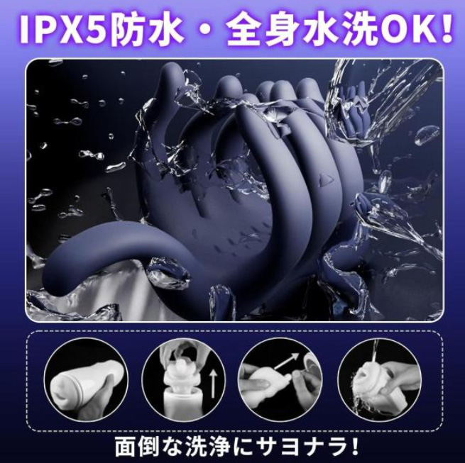 - 指はシリコンでサイズ調整できるため、ペニスサイズによらず使用可能。勃起をしていない状態でも使用可。