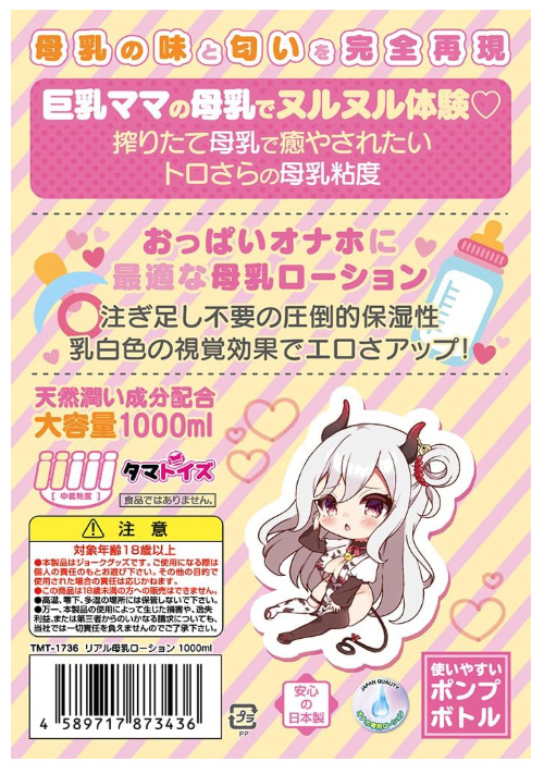 - 巨乳ママの母乳の味と匂いをイメージした乳白色、中粘度、甘いミルキーな匂い付き。そのまんま「リアル母乳ローション」です。タマトイズより。