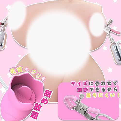 - 乳首クリップと舌で舐めるローターの組み合わせで、乳首とクリトリスの3点同時刺激による痺れるような快感を楽しめます。さらに乳首クリップをクリトリスに使用したり、舌で乳首を攻めるなど、さまざまなプレイが可能。