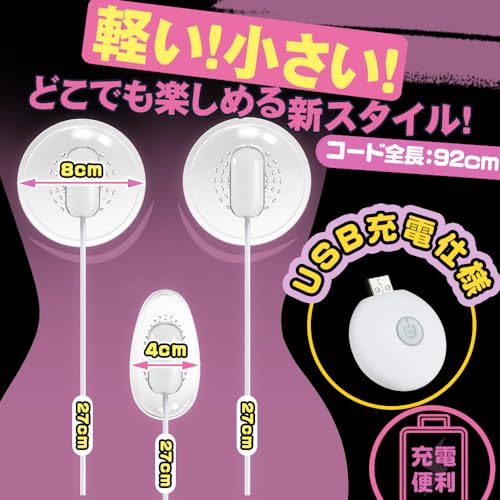 - カップのサイズを問わない形状とサイズ。胸用の方サイズ:8x8cm クリ用の方サイズ:9x4cm。女性に限らず、男性の胸板も使用可能。しっかりと貼りつくデザイン。最新の乳首カップ素材。極上の柔らかさが特徴のウォーターシリコン製乳首ローター。カップを乳房とクリに押し付けると。真空状態になって乳首と陰核をキュッと吸引。