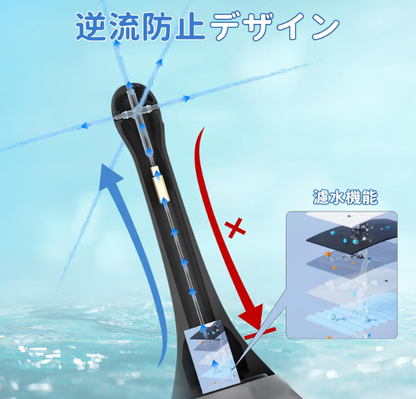 • 独特な逆流防止デザインと構造で、水を押したあと、汚水が逆流することを防止。