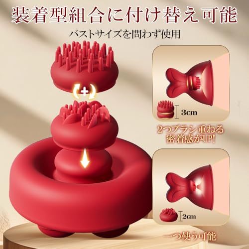 - ブラシアタッチメントが本体に付属しているものに加えて2個付属。を重ねて使うことで、男性の胸にも対応。乳首へのピンポイント刺激がしっかり届きます。
