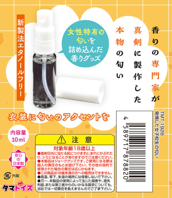 - 女子校生とすれちがった時に香る制服の匂いを再現した、スプレーして使えるタマトイズの匂いフェチ系香水です。