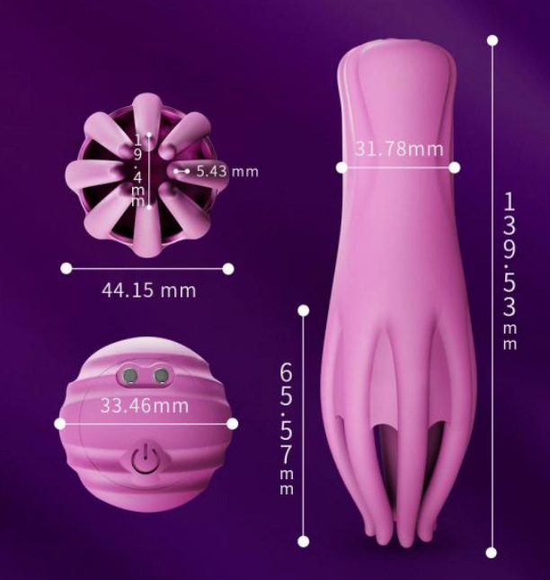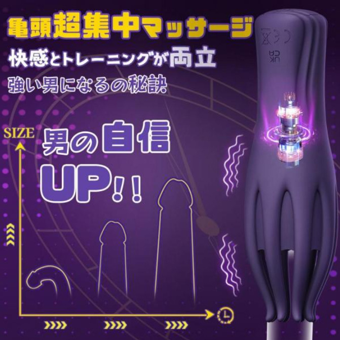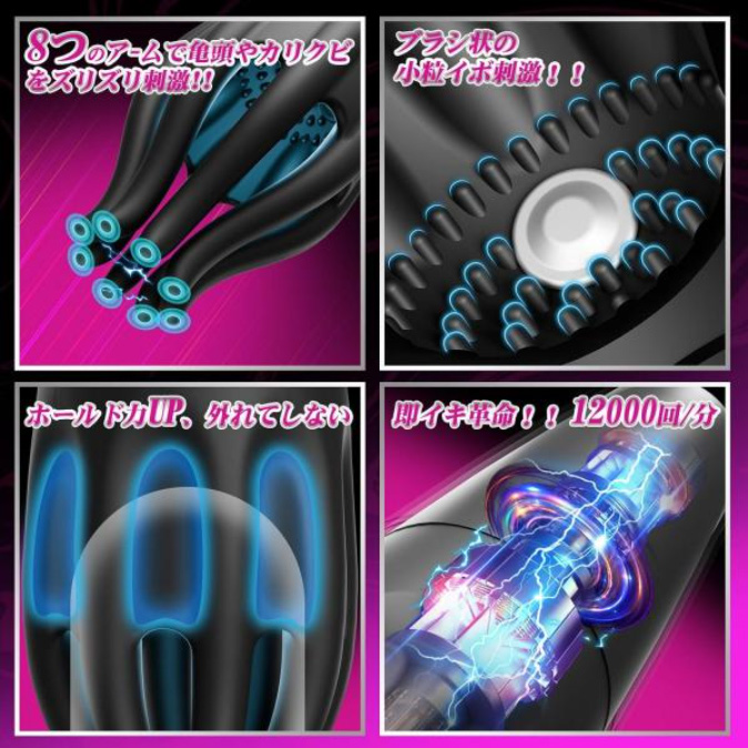 - 8本の柔らかいシリコンアームがペニス先端を360度完全に包み込み、あらゆる角度からピンポイントで刺激。さらにカサ奥部には71個の小粒突起を搭載。亀頭先端を刺激。
