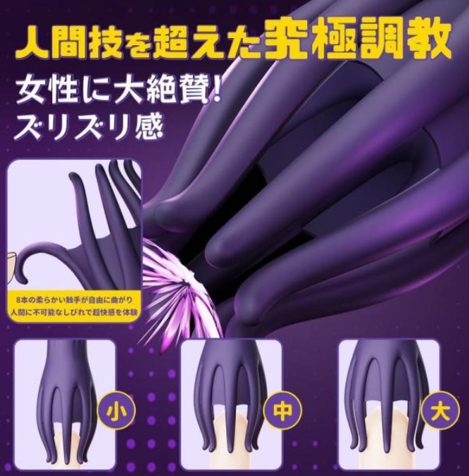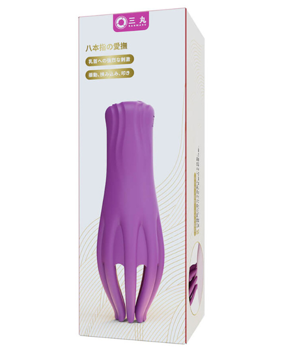 - ワキワキと指で揉み込む動作と振動で刺激を与える手のような形のコードレスローター。「摘花(てきか)の指 亀頭もみ」「GLANSTRAINER 悪魔の手」を経た進化版。タコ足というより、もはや「手」に近い進化。