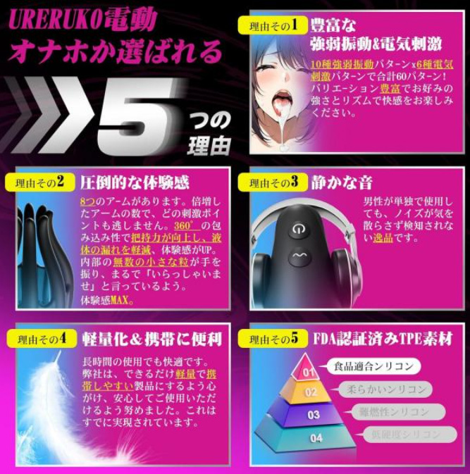- 中華輸入製品。決まった商品名は特にありません。中華製はエロへの訴求が日本製より強い傾向があり、安くて高性能。輸入元はGuangzhou Meijiaren Trading