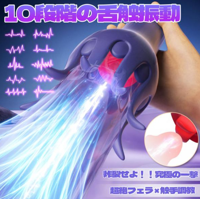 - 10種の振動パターン。振動は超強力モーターにより、回転運動や上下運動を伴う上、さらにイボ付き触手の摩擦と合わさって極上の快感を演出します。