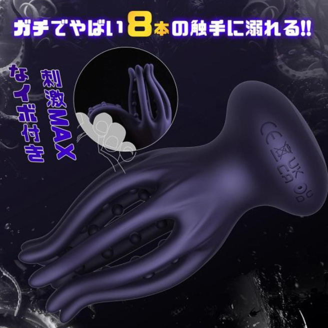 8本の柔らかいイボ付き触手と丸型ベースで構成された、まさに「タコ」型デザインの亀頭バイブ